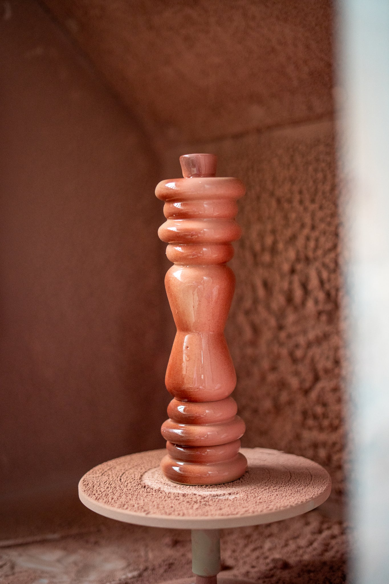 Świecznik, który sam w sobie jest piękną dekoracją stołu.Minimalistyczny, a jednocześnie wyrazisty — wprowadza do wnętrza subtelną elegancję i przyciąga wzrok. Pięknie prezentuje się zarówno solo, jak i w komplecie.