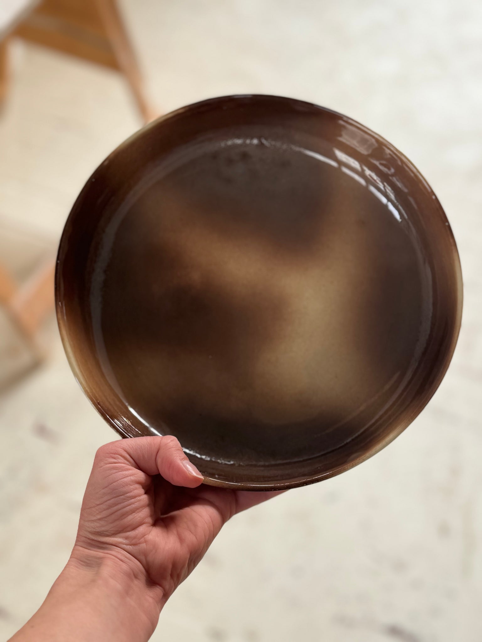 Talerz przez zbyt grubą warstwę szkliwa wpada w mleczny odcień w niektórych miejscach. Ma w niektórych punktach niedoszkliwienia. w pełni użytkowy.