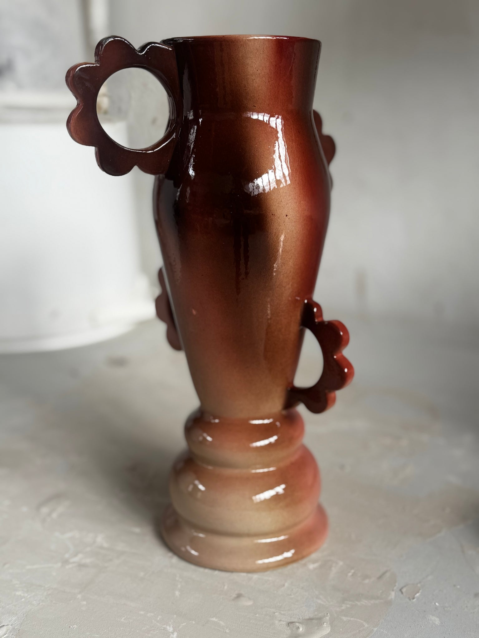 wazon jest piękny i w pełni użytkowy, jedyne co to ma kawałek odstającej, nieoczyszczonej przed wypałem gliny, który jest w zasadzie niezauważalny.