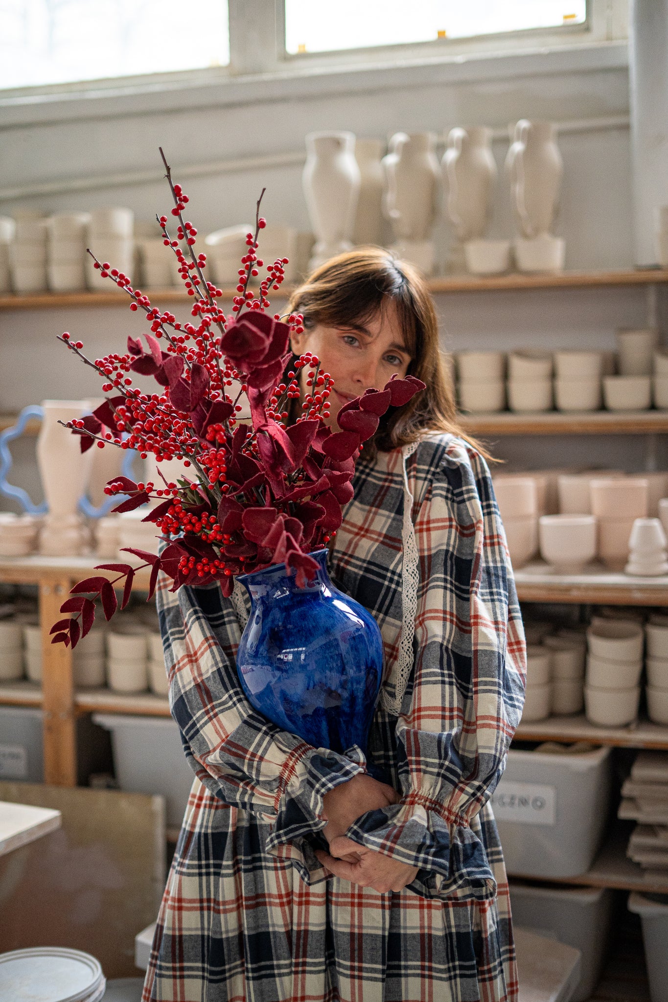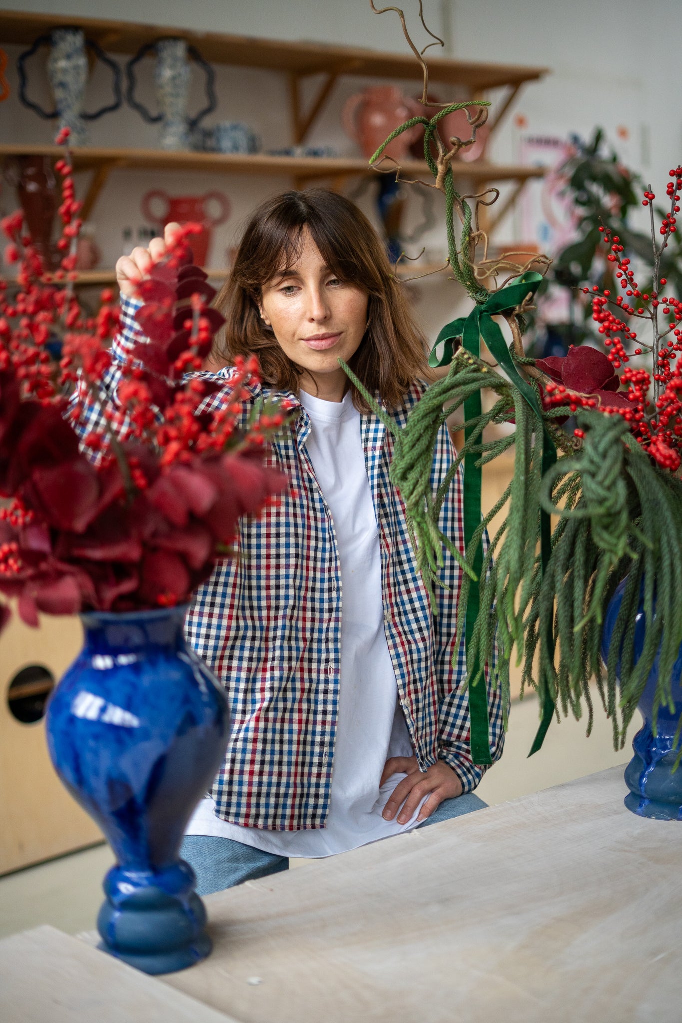 Wazon Miro, toczony na kole w głębokim kobalcie z efektem spływającego szkliwa. Idealny, by podkreślić kolorowe kwiaty i dodać elegancji wnętrzu. Wprowadza wyrazisty akcent koloru w subtelny sposób.